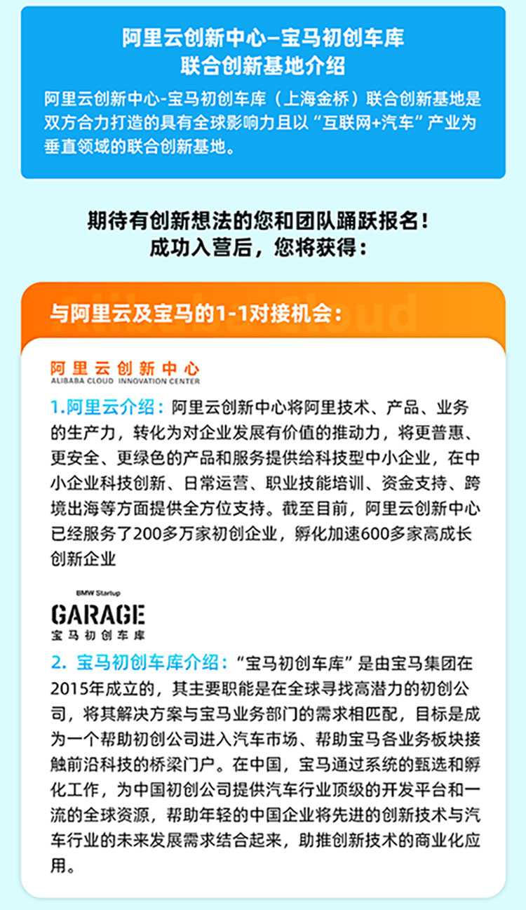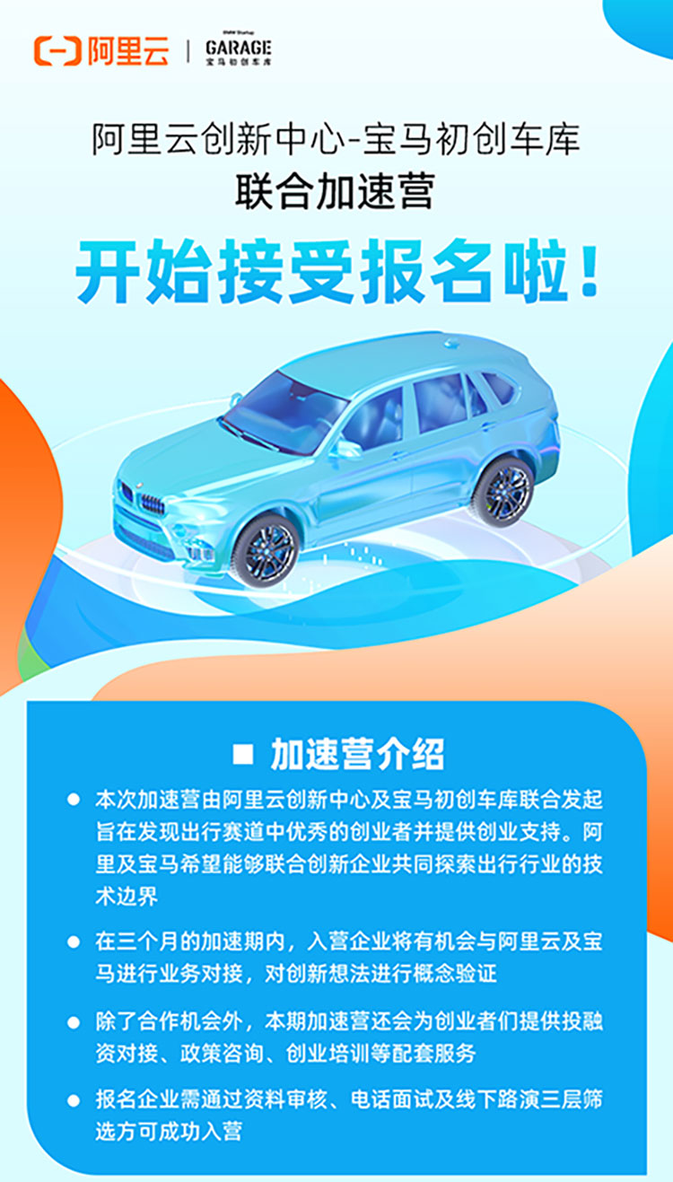 阿里云创新中心-宝马初创车库联合加速营开始报名啦!!