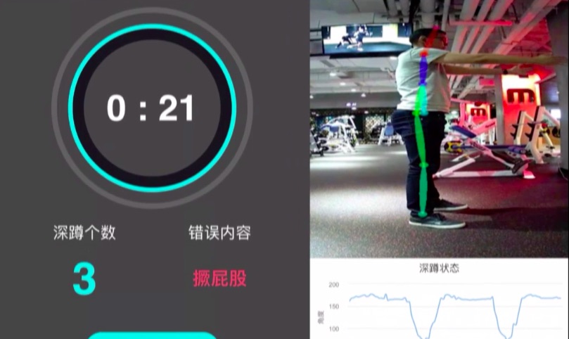 会员在进入健身房时会经过人脸辨认流程承认会员信息;进入到健身房今后,用户能够翻开微信上的 Hallo 小程序,依据相应运动的动作规范开端运动。健身房的摄像头会记载下用户的训练视频信息,体系再经过视觉辨认技能读取动作数据,将这些数据与规范数据相比照,来判别用户的动作正确与否。用户在完毕训练后,即可在手机上看到训练陈述,如耗费了多少卡、做了哪些项目,花费多长时刻。最重要的是,用户能够看到过错动作的回放以及提示。“你假如深蹲时撅屁股了,它会在视频回放周围以文字的方式提示,过错内容是撅屁股。“黄楫洋说。