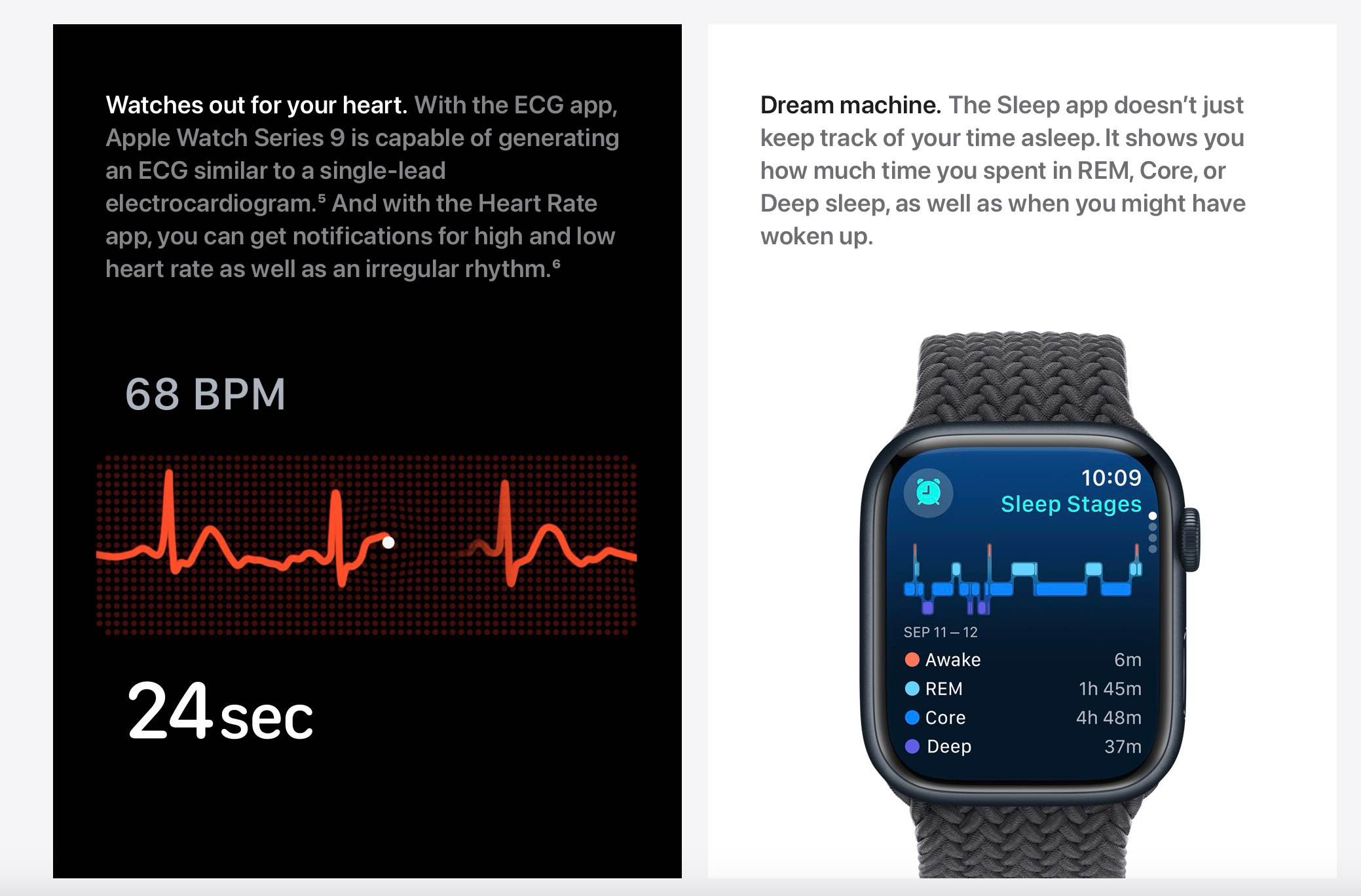 揭露材料显现,Apple Watch Series 9和Apple Watch Ultra 2由苹果于本年9月推出,其间,前者搭载全新的S9 SiP芯片,第二代超宽带芯片(UWB),并支撑运动健康监测功用,包含心率监测、血氧丈量、睡觉监测以及事故检测和跌倒检测等功用。